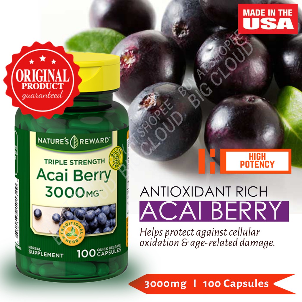 Nature S Reward Triple Strength Acai Berry 3000 Mg 100 Capsules Shopee Malaysia